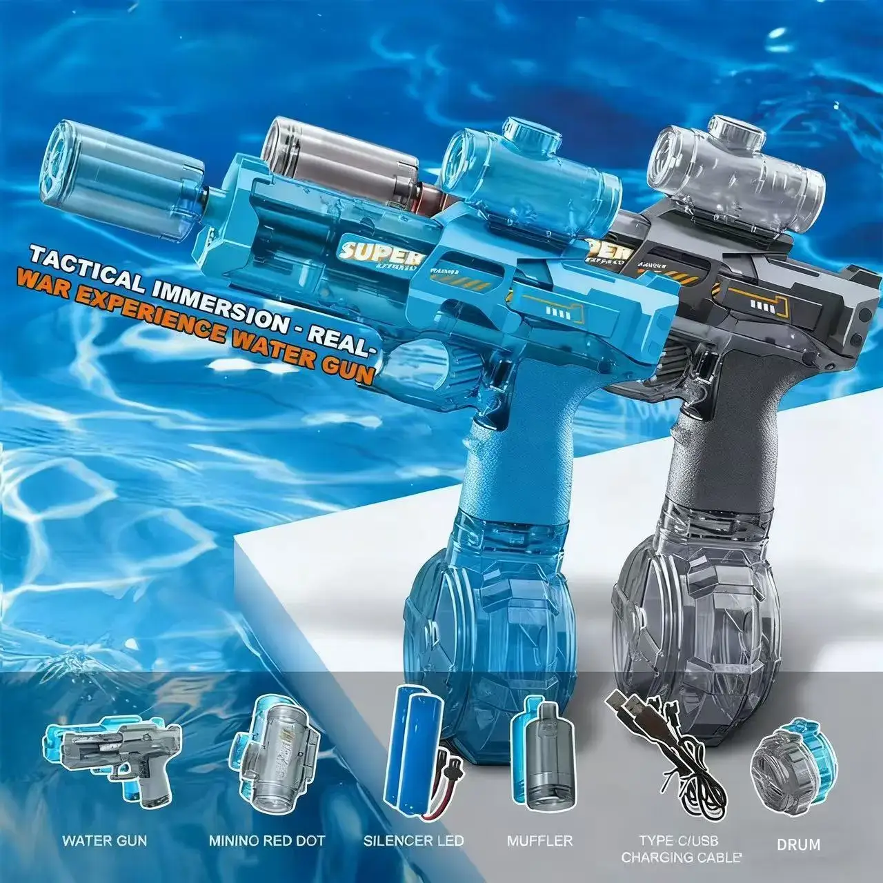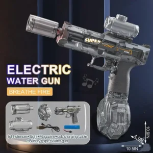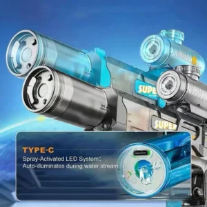 • DIKUASAI ELEKTRIK: Menampilkan mekanisme tembakan air berkuasa elektrik automatik dengan kesan cahaya LED untuk pengalaman bermain yang dipertingkatkan