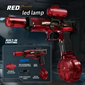 Pistol Air Elektrik Taktikal dengan Pembidik Titik Merah & Majalah Dram – Peluru Air Boleh Dicas Semula untuk Permainan Luar