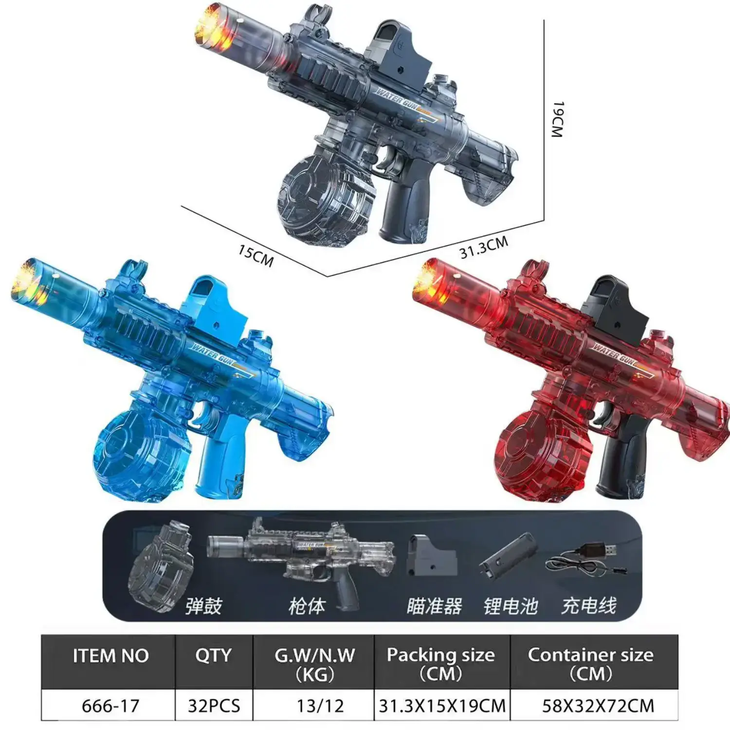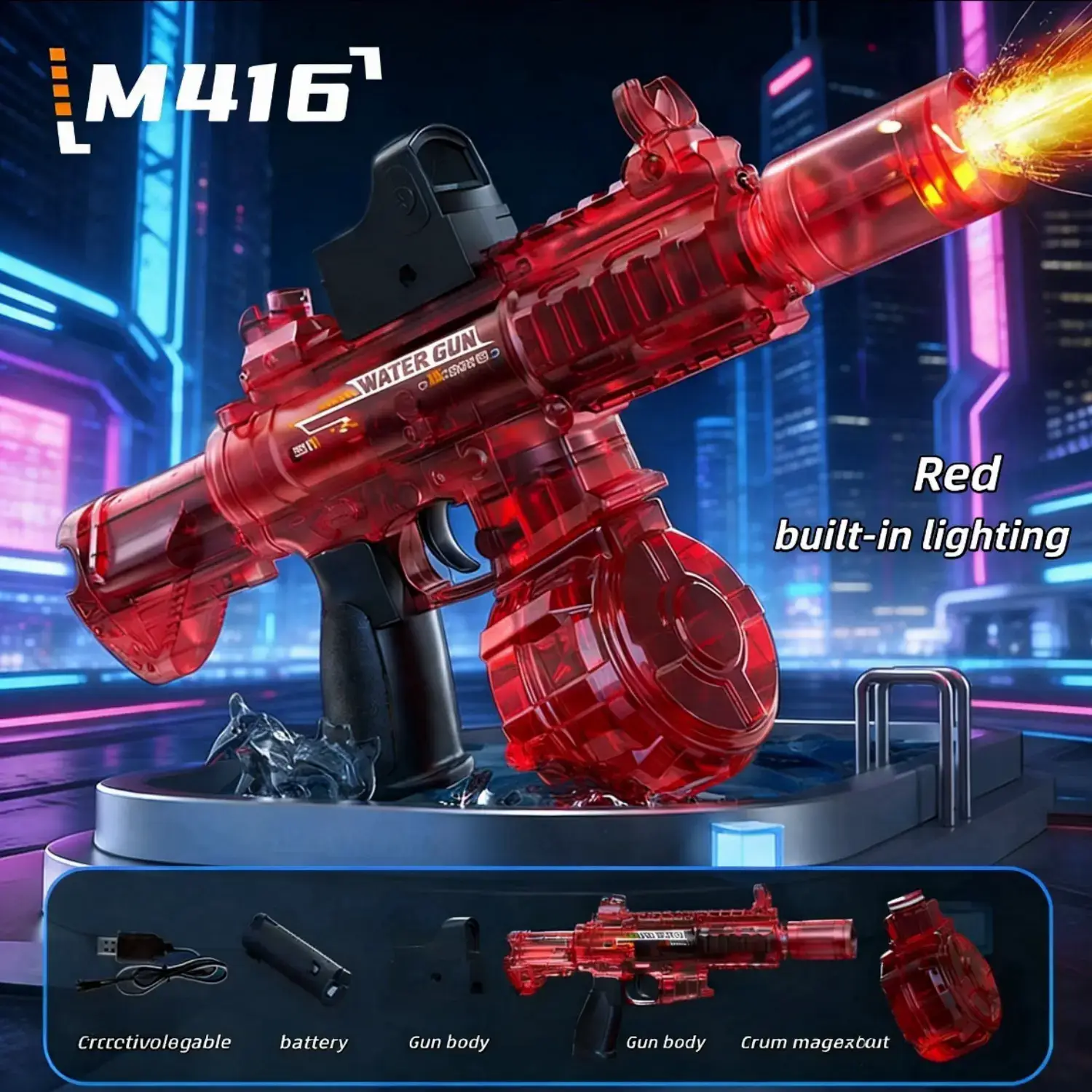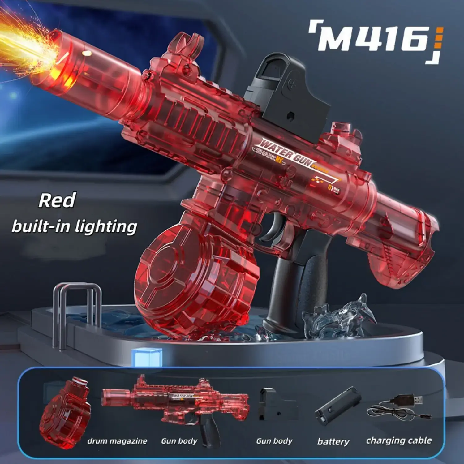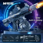 【Kesan Medan Perang LED】 Api LED realistik yang dipasang pada muncung berkelip dengan setiap tembakan, mengubah pertarungan pistol air elektrik menjadi pengalaman pertempuran sinematik siang atau malam.