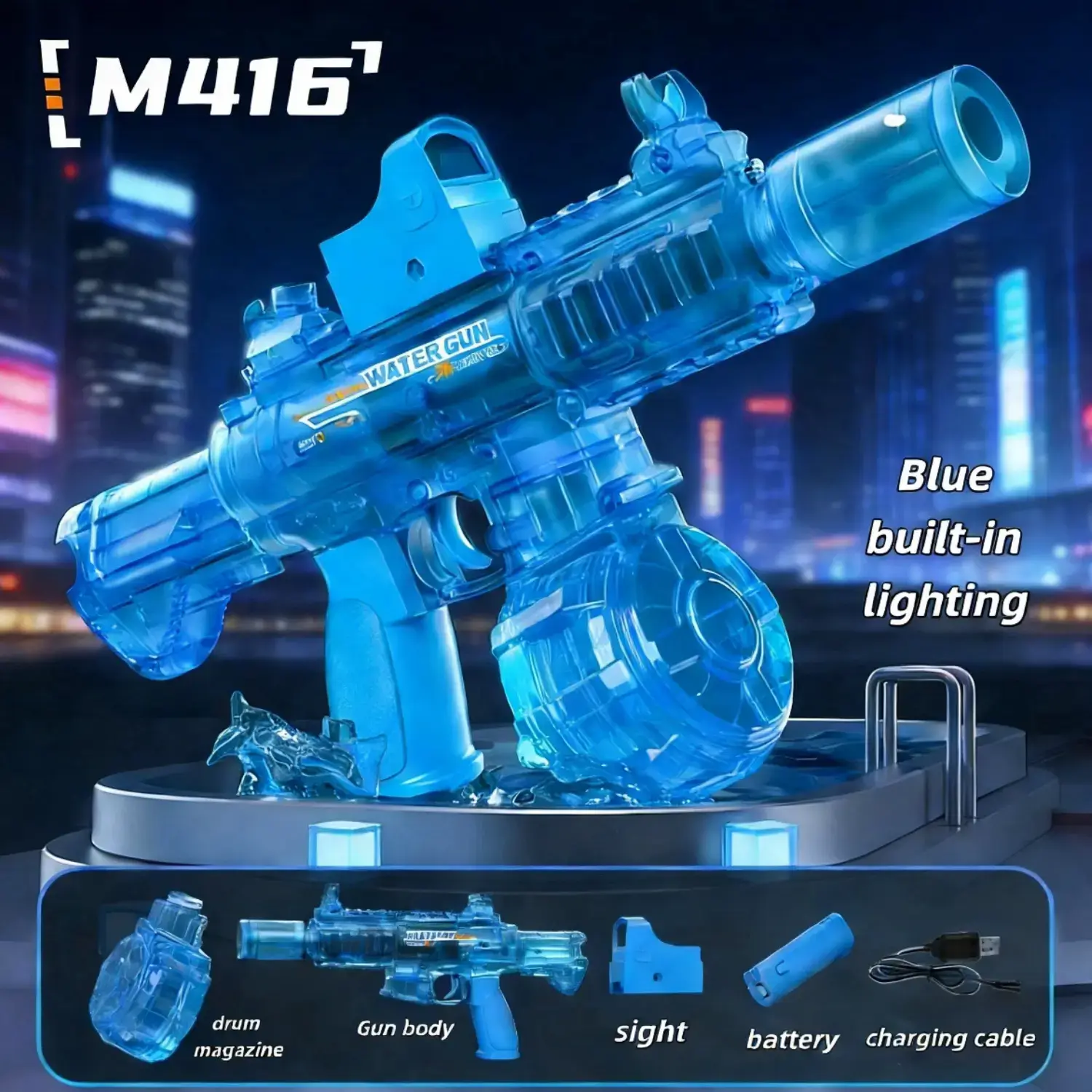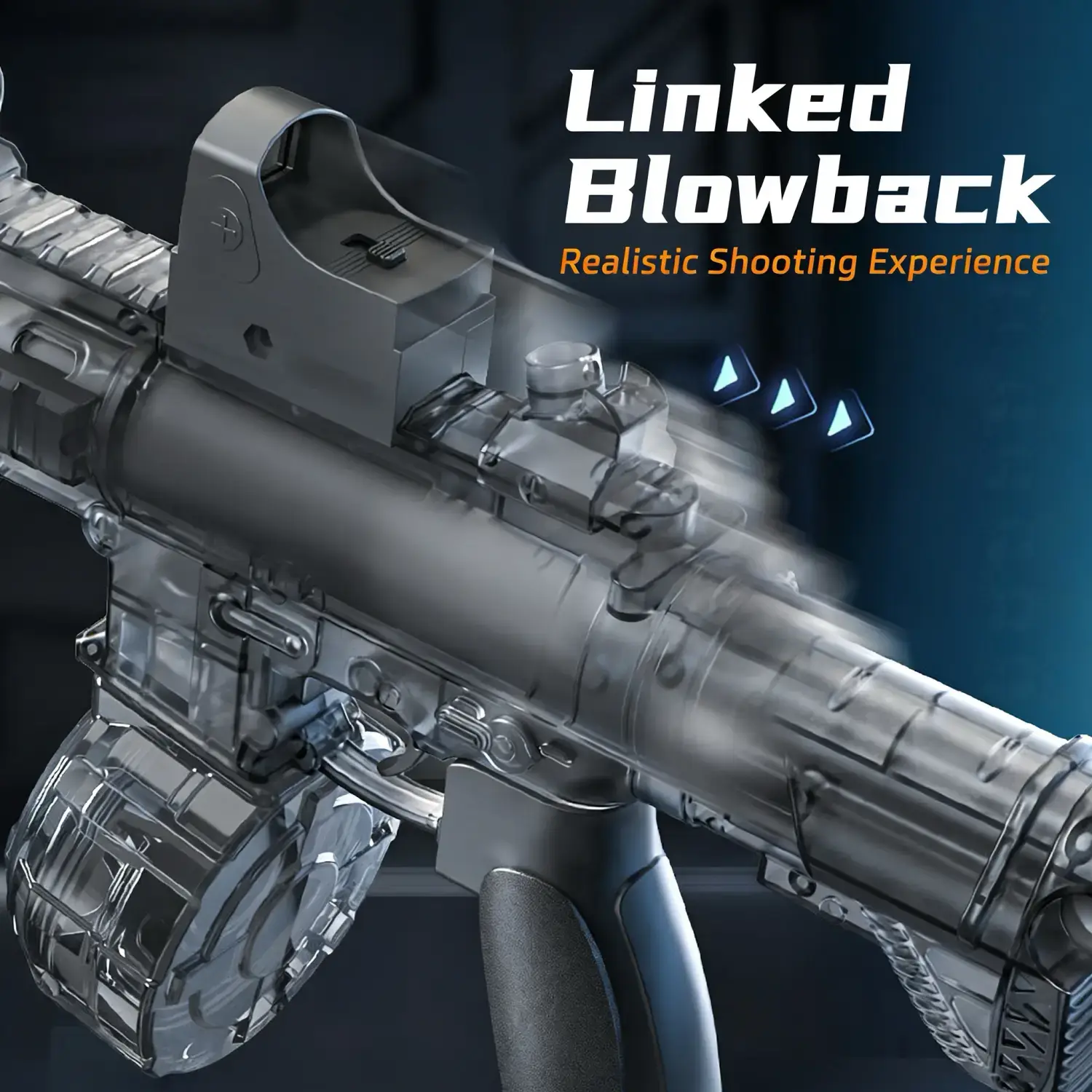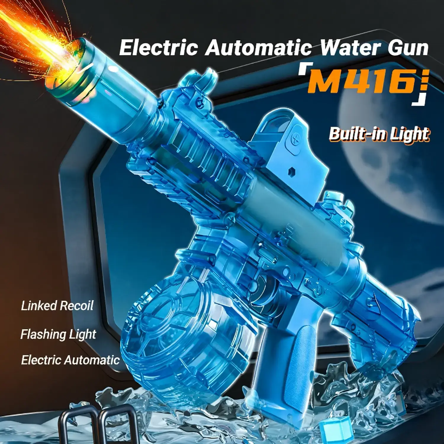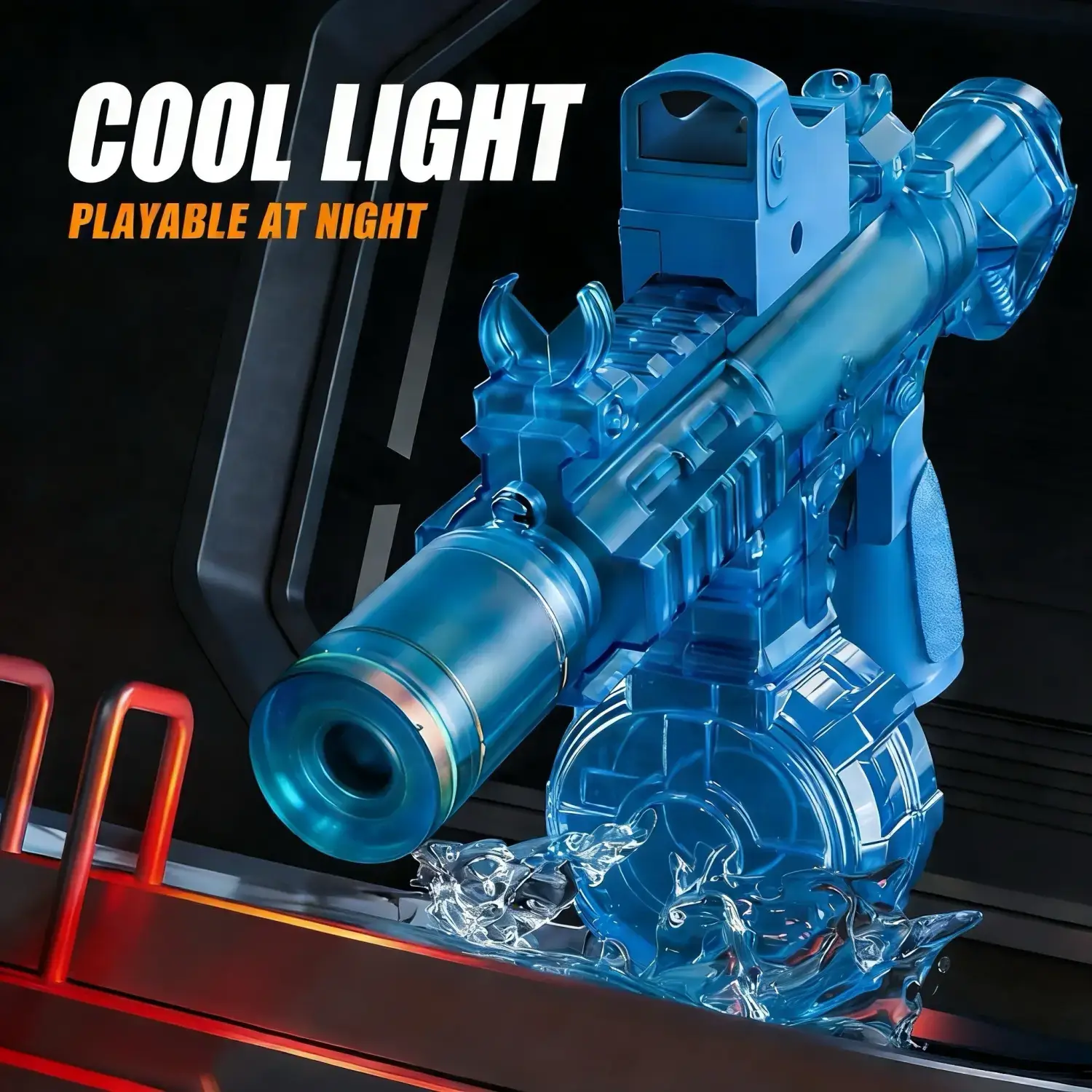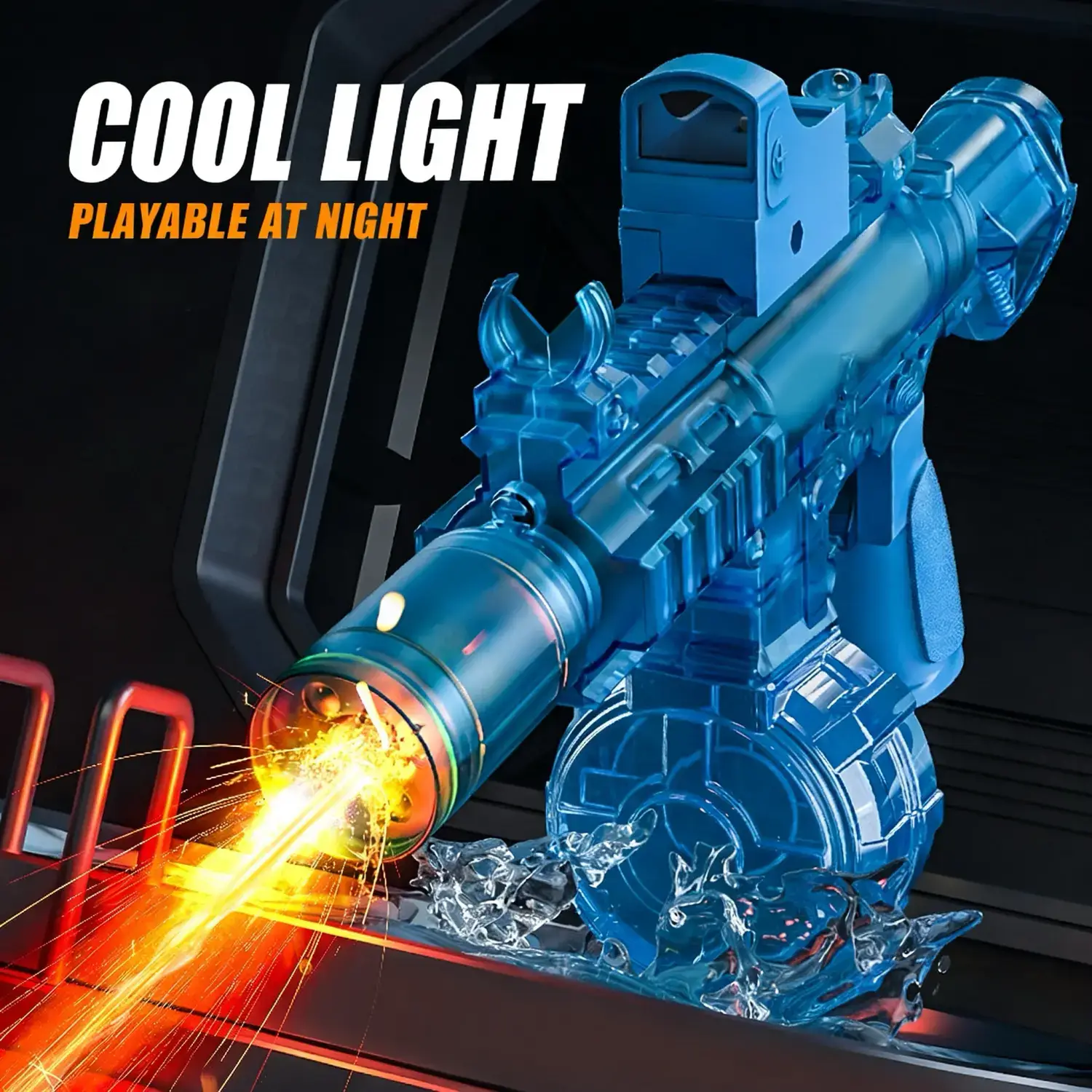 Peletup Bola Gel Elektrik Biru Lutsinar dengan Lampu LED – Pistol Mainan Permainan Malam yang Sejuk