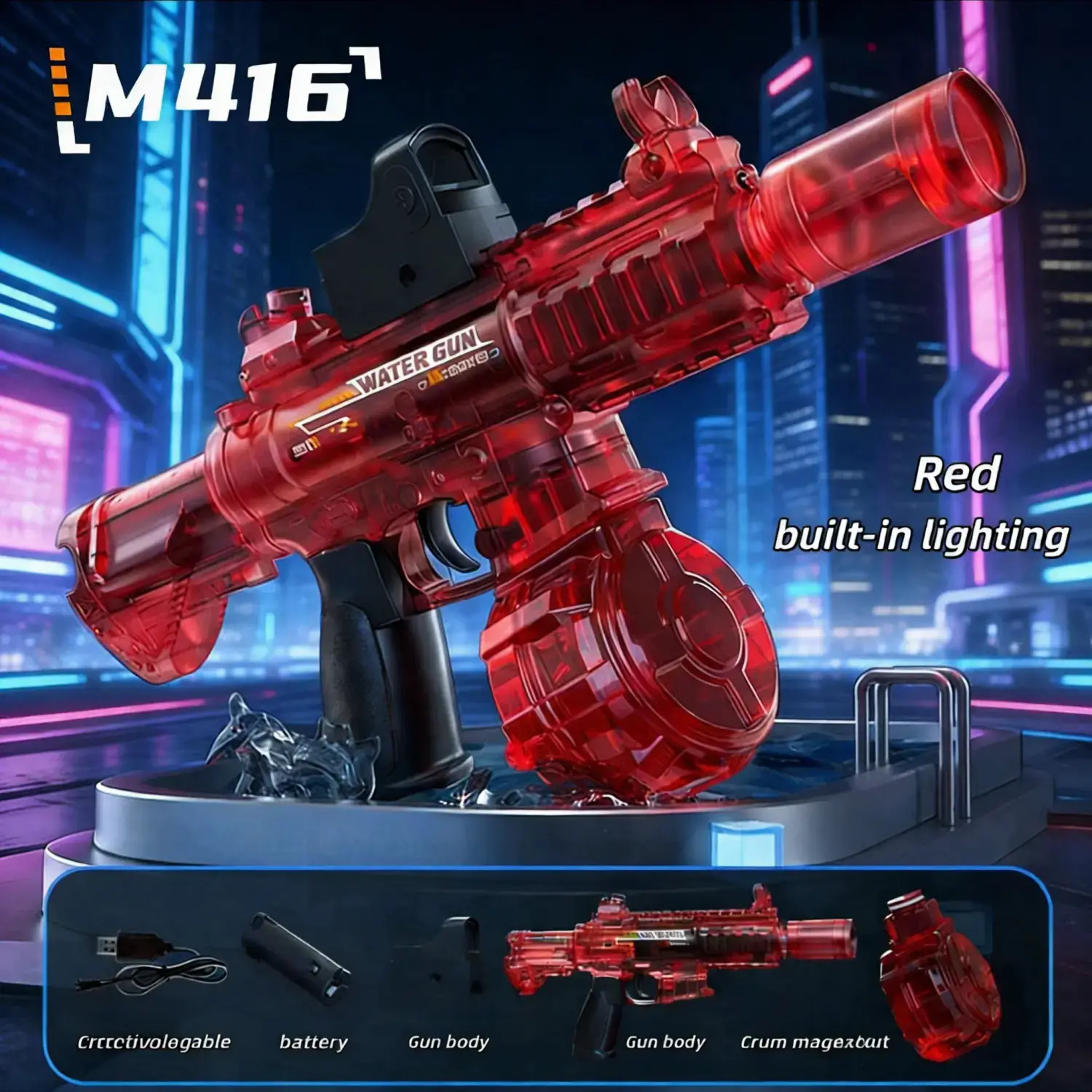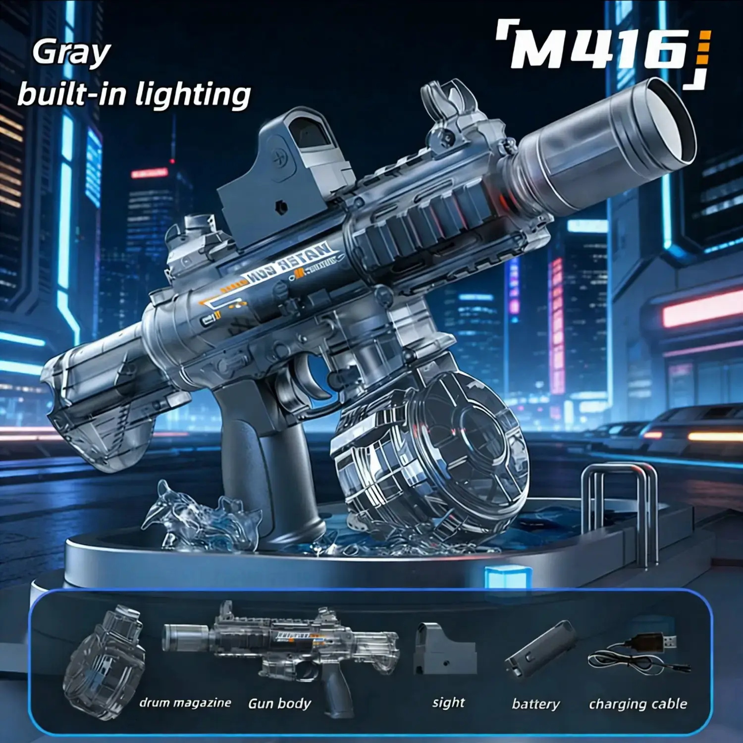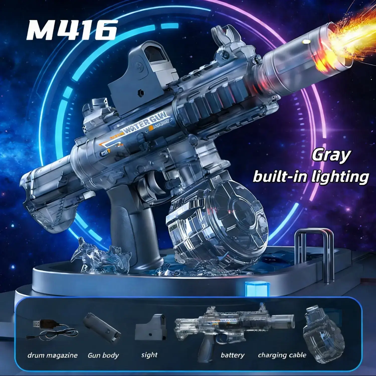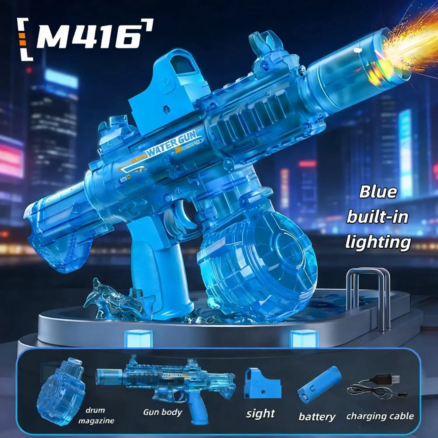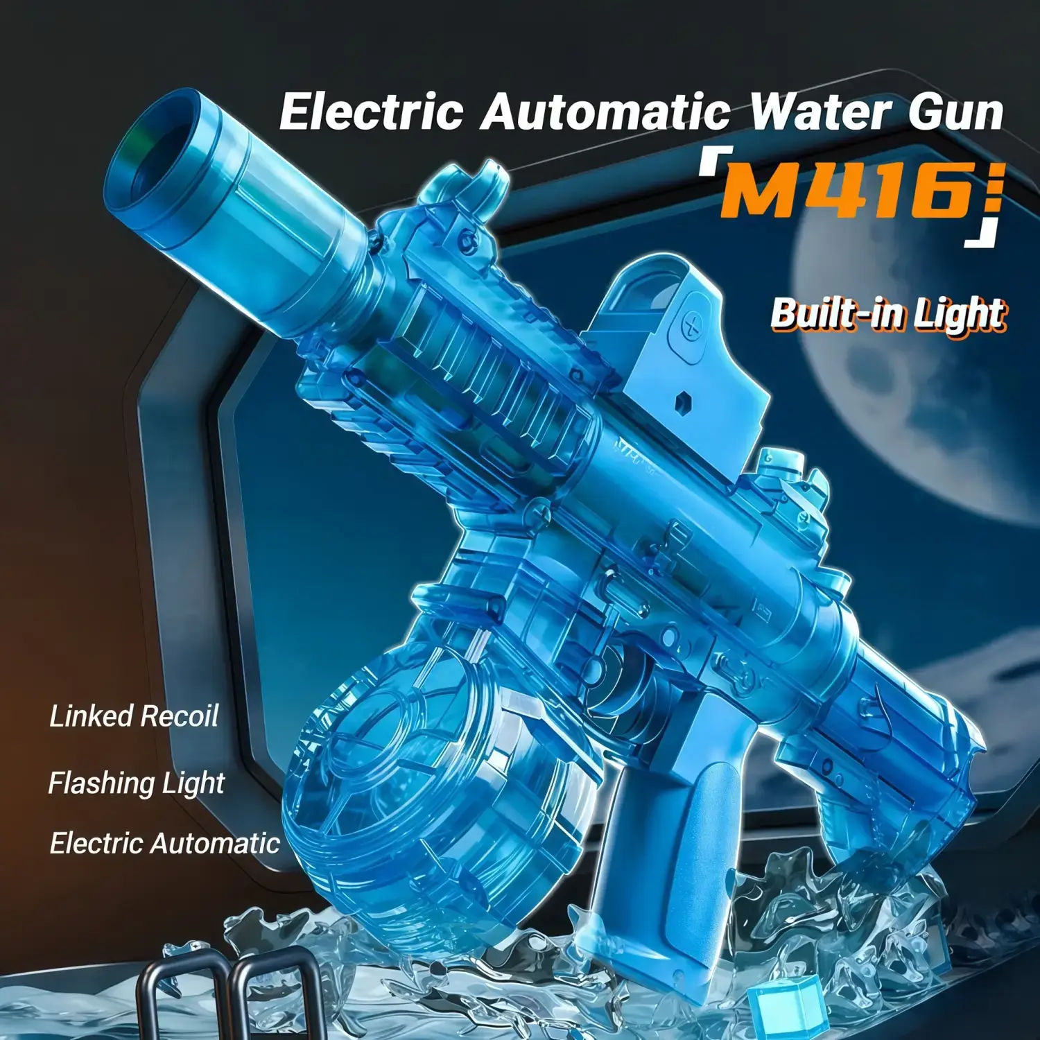 Peletup Bola Gel Elektrik Biru Lutsinar dengan Lampu LED – Pistol Mainan Permainan Malam yang Sejuk